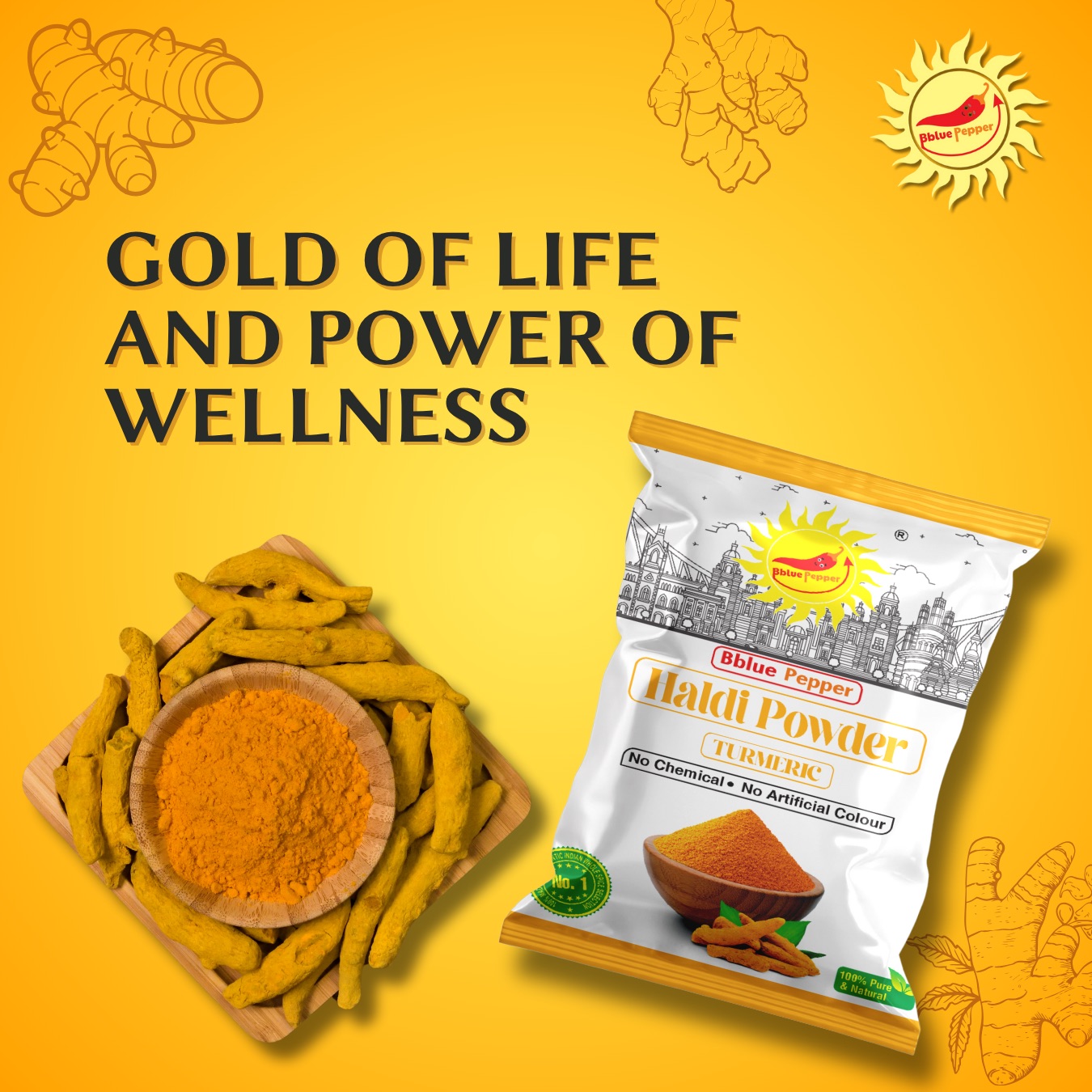 Ethical Sourcing & Quality Promise: At Bbluepepper, we are committed to providing you with spices of unmatched quality. Our Haldi Powder is ethically sourced, rigorously tested, and packed with care to ensure it reaches your kitchen in its purest form, ready to transform your meals.